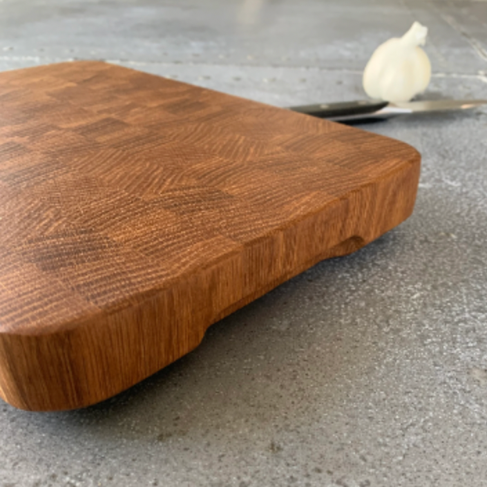 We love end grain cutting boards for their durability, hygiene, and ease of use on our knives.